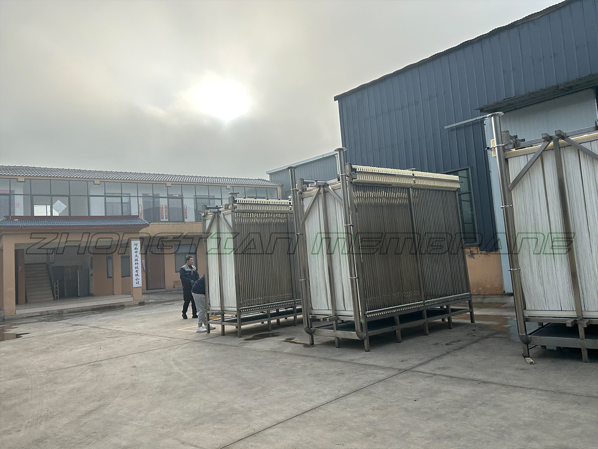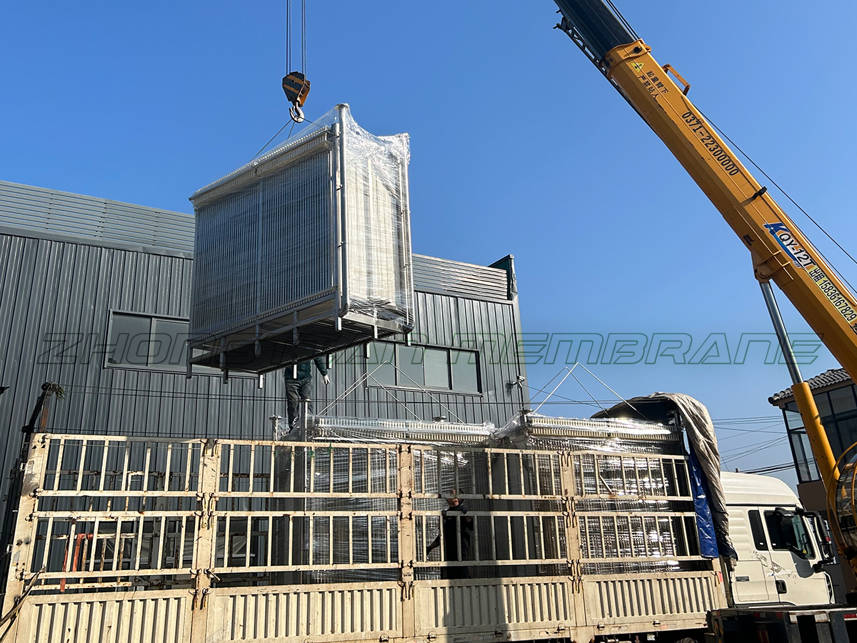二零二三,新年伊始。 元旦剛過,廠門口滿地的紅屑還未來及打掃,一陣轟鳴聲傳來,一輛平板大貨車緩緩駛入中天膜廠區。 本次發貨的產品為柱式超濾膜組、RO一級反滲透膜組以及配套的反清洗模塊。從設計方案至裝車發貨,中天膜應客戶需求,保質保量的前提下加緊生產,如期發貨完成!